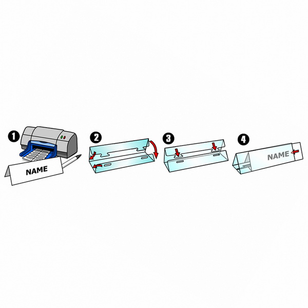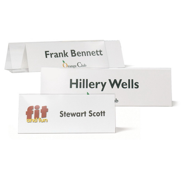 Табличка настольная с вкладышем. Позволяют легко прочитать имя участника или гостя конференции. Вы можете изготовить идентификационную карточку сами написать ее от руки или же распечатать через обычный принтер. В ассортименте два формата. Размер: 210 х 63 мм. В упаковке: 50 шт.