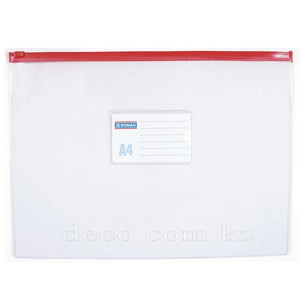 Папка-конверт Donau на молнии - изготовлена из прочного прозрачного ПВХ толщиной 170 мкн. Предназначена для хранения и переноски документов формата А4. Закрывается на пластиковую молнию. На лицевой стороне - карман для визитки или этикетки. Внешний размер: 240 х 330 мм. Цвет: прозрачный.